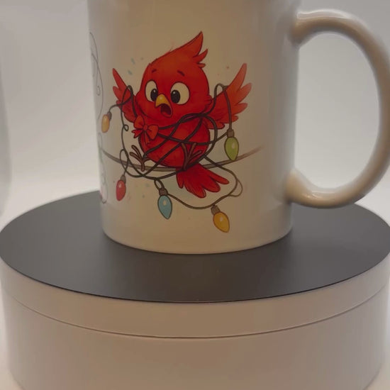 Bring some cheerful chaos into your holiday season with this adorable “Festively Stuck” Cardinal Mug! Featuring a bright, wide-eyed little cardinal tangled in colorful Christmas lights, this mug perfectly captures that relatable holiday feeling — cute, cozy, and just a little overwhelmed.